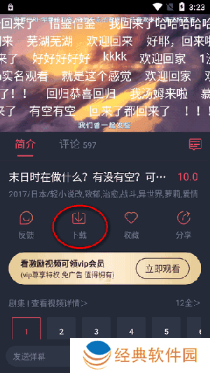 4、点开要下载缓存的动漫,点下方的下载按钮。