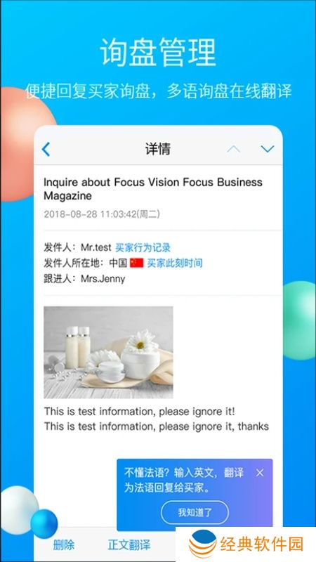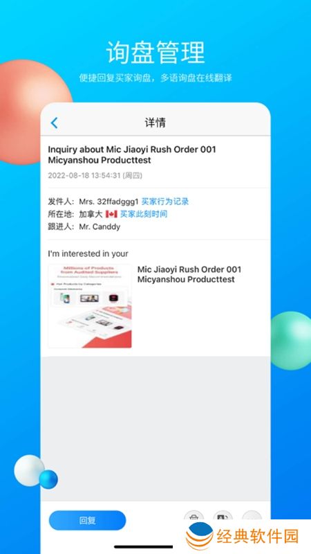 软件功能1、询盘及时获取新询盘,抢先同行一步