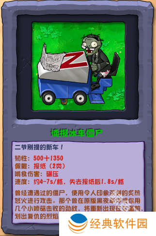 植物大战僵尸杂交版读报冰车僵尸怎么样的属性内容在这里为广大玩家展出,是一个骑着 冰车看着报纸的僵尸,那么下面就让本站站的小编来为您介绍一下。